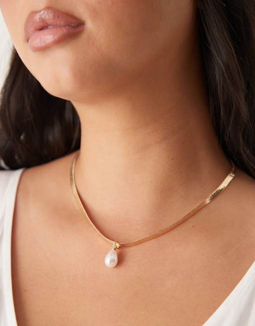 ASOS DESIGN Curve - Korte schakelketting met platte schakels en imitatieparelhangertje in goudkleur
