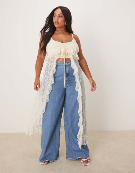 ASOS DESIGN Curve - Lang kanten hemdje met split aan de voorkant in wit