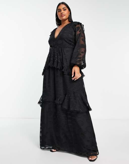 ASOS DESIGN Curve - Maxi dress jurk met vervormde stippen en ronde zoom in zwart