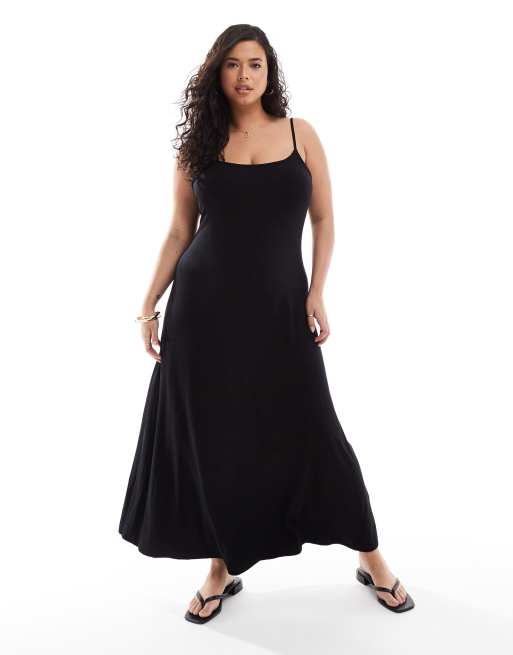 ASOS DESIGN Curve - Maxi-jurk met bandjes en lage achterkant in zwart