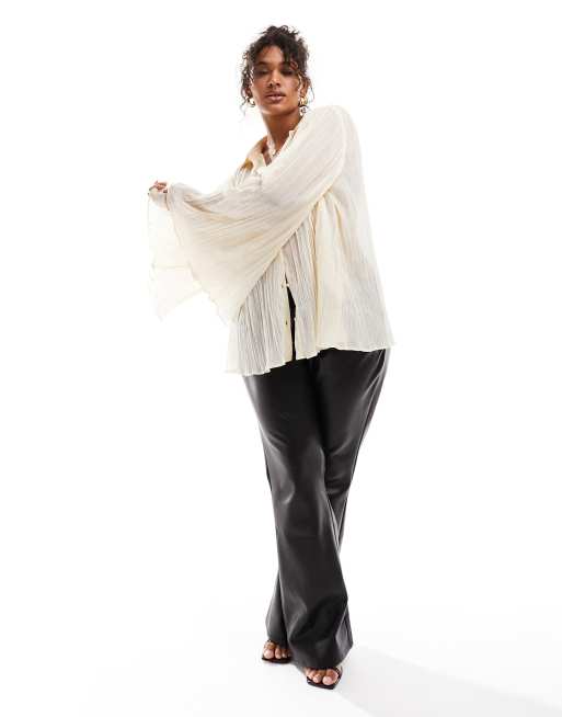 ASOS DESIGN Curve - Metallic overhemd met kreukels in crème