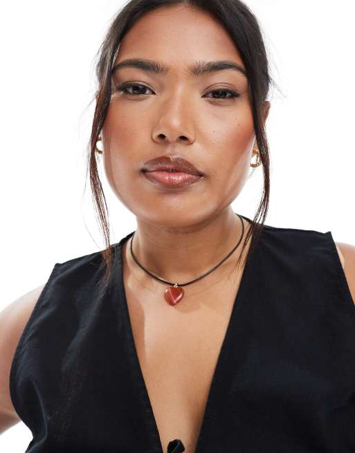 ASOS DESIGN Curve - Middellange ketting van touw met rood pofhartje