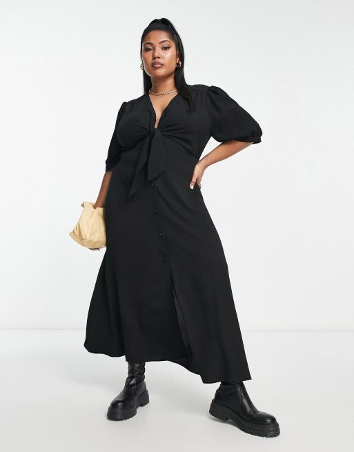 ASOS DESIGN Curve - Midi-jurk met gestrikte voorkant en knoopsluiting in zwart