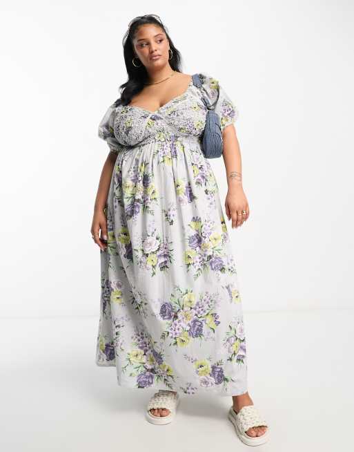 ASOS DESIGN Curve - Midi-jurk van katoen met gesmokt lijfje in bloemenprint