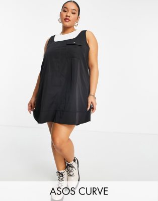 ASOS DESIGN Curve - Mini-swing-overgooierjurk van nylon in zwart