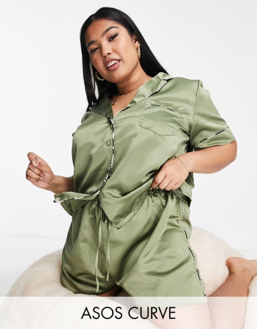 ASOS DESIGN Curve - Mix en match - Satijnen set in olijfgroen