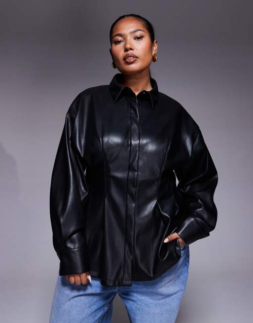 ASOS DESIGN Curve - Overhemd van imitatieleer met getailleerd detail in zwart
