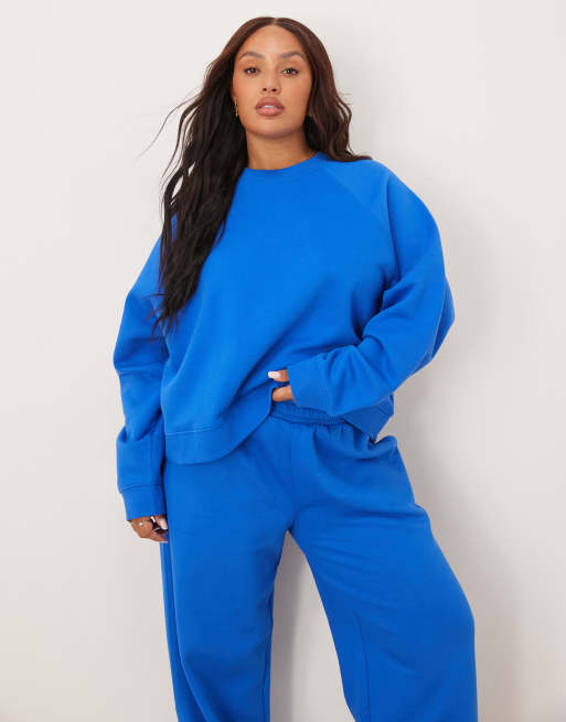 ASOS DESIGN Curve - Oversized brushback sweatshirt met raglan detail in blauw