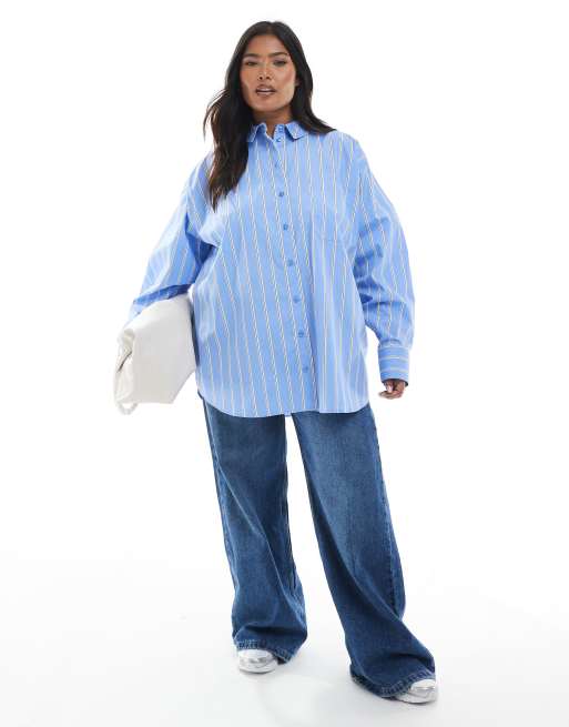 ASOS DESIGN Curve - Oversized gestreept overhemd in blauw en wit