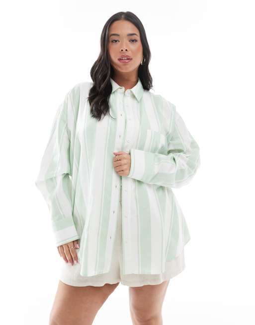 ASOS DESIGN Curve - Oversized overhemd van linnenmix met brede strepen