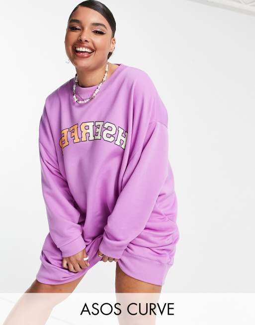 ASOS DESIGN Curve - Oversized sweaterjurk met print in electric violet