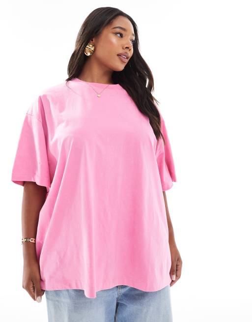 ASOS DESIGN Curve - Oversized T-shirt in roze met wassing