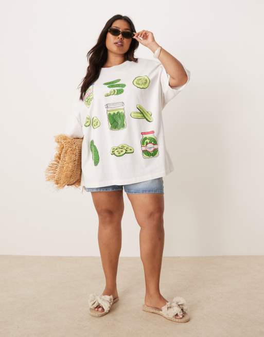 ASOS DESIGN Curve - Oversized T-shirt met grafische augurken-print in wit
