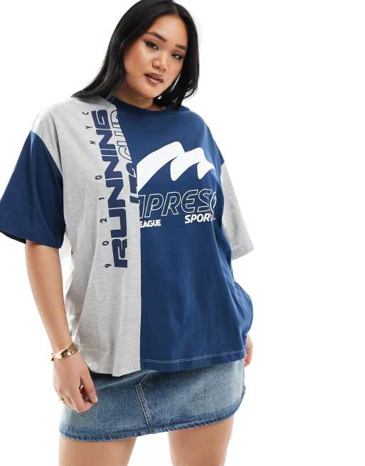 ASOS DESIGN Curve - Oversized T-shirt met hardloopprint in gemêleerd grijs