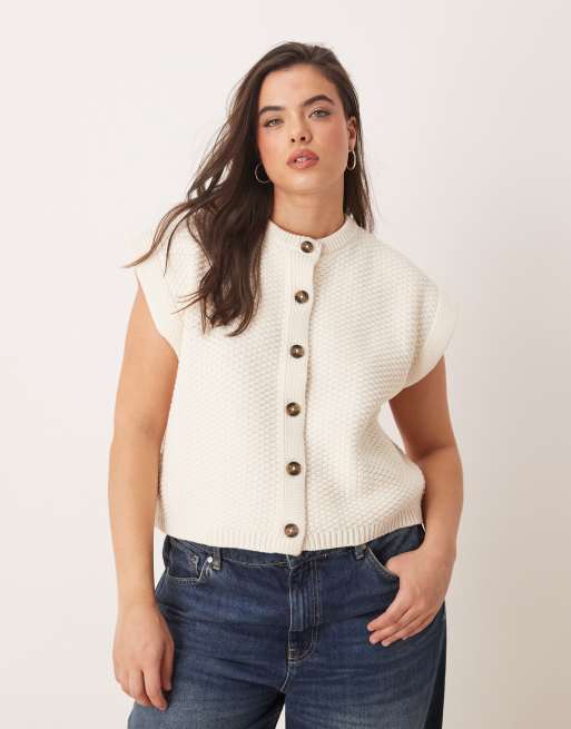 ASOS DESIGN Curve - Rechte gilet met gebreide steken en knoopdetail in crème