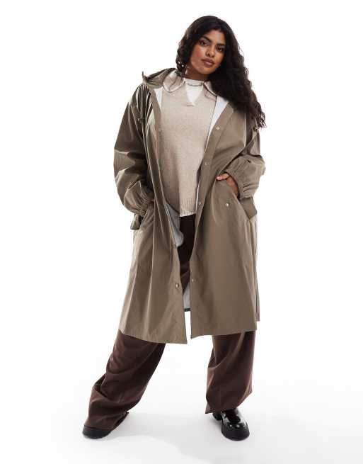 ASOS DESIGN Curve - Regenparka met rubberen coating in champignonkleur