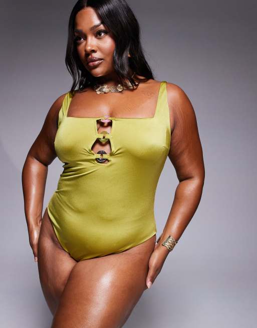ASOS DESIGN Curve - Revenge - Badpak met ringen in limoengroen