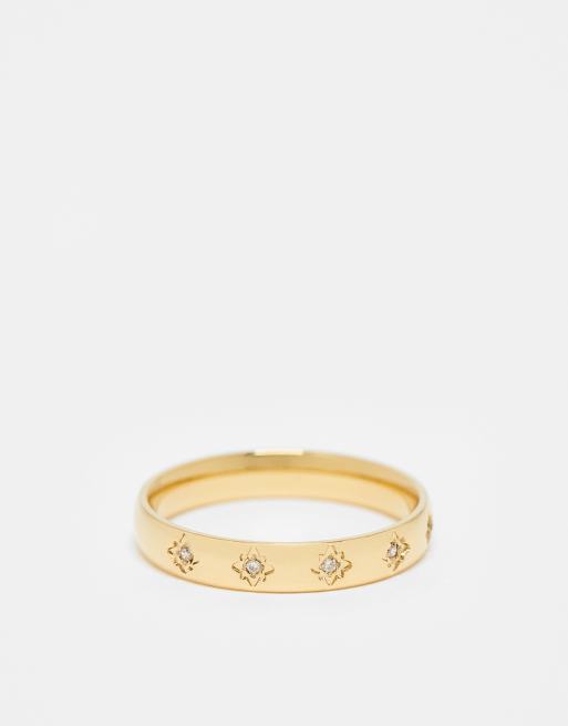 ASOS DESIGN Curve - Ring van roestvrij staal met stervormige siersteentjes in goudkleur
