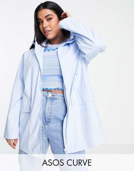 ASOS DESIGN Curve - Rubberen regenjas met contrasterend stiksel in blauw