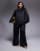 ASOS DESIGN Curve - Satijnen broek met wijde pijpen in zwart, deel van co-ord set