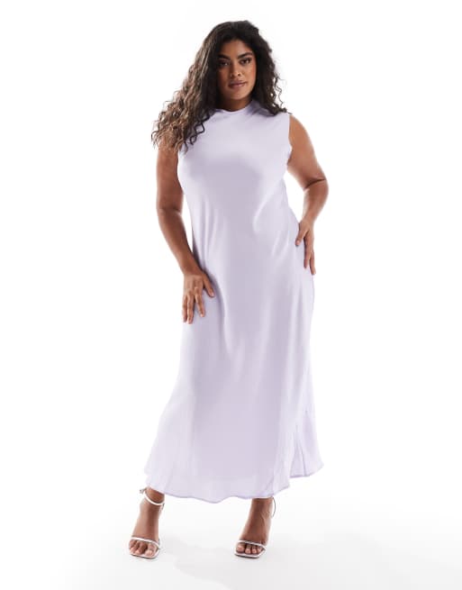 ASOS DESIGN Curve - Satijnen midi jurk in lavendel