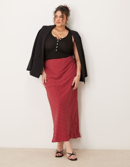 ASOS DESIGN Curve - Schuingesneden maxi rok van chiffon in rood met stippenprint