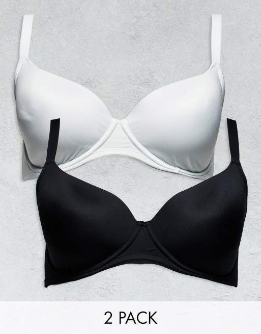 ASOS DESIGN Curve - Set van 2 set voorgevormde T-shirtbeha's van microvezel in zwart en wit