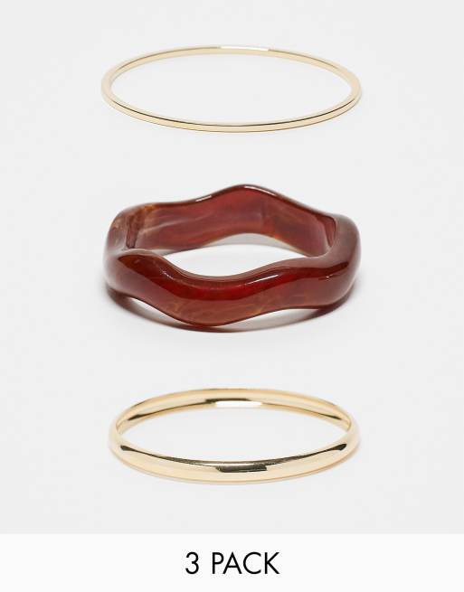 ASOS DESIGN Curve - Set van 3 armbanden in hars en goudkleur