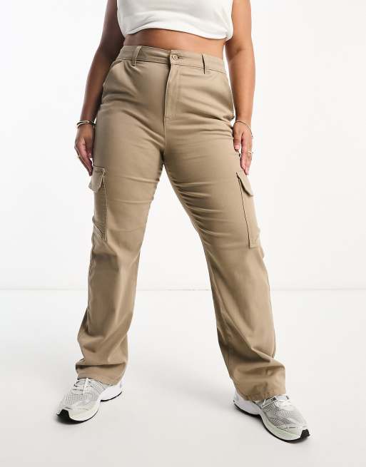 ASOS DESIGN Curve - Smalle cargobroek met zakken in zandkleur
