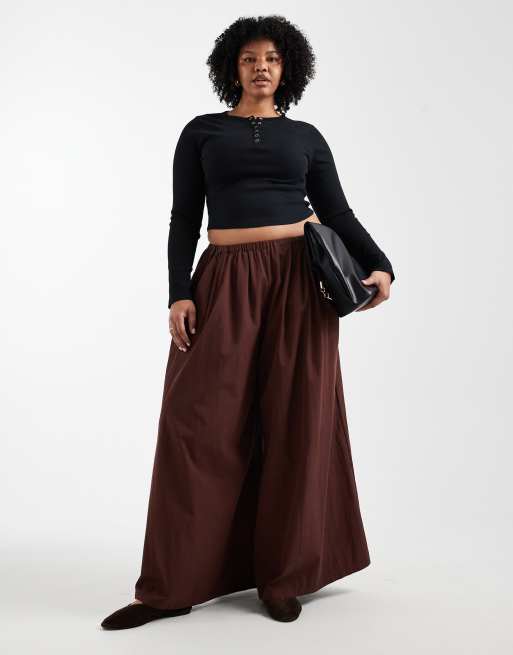 ASOS DESIGN Curve - Super wijde broek in bruin