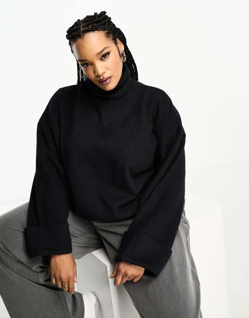 ASOS DESIGN Curve - Superzachte coltrui met manchetten in zwart