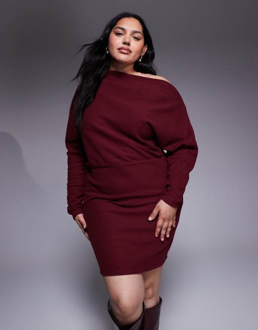 ASOS DESIGN Curve - Superzachte mini-jurk met lange mouwen en afhangende schouder in paars