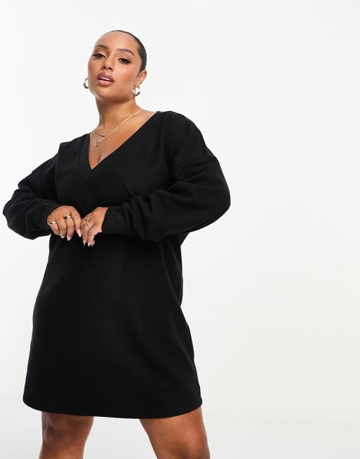 ASOS DESIGN Curve- Superzachte ruimvallende mini trui-jurk met V-hals in zwart
