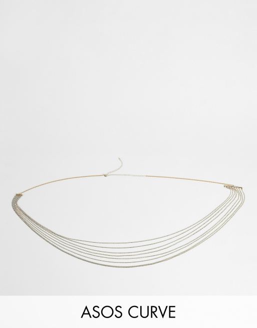 ASOS DESIGN Curve - Taille- en heupriem met meerdere kettingen en diamantjes in goud