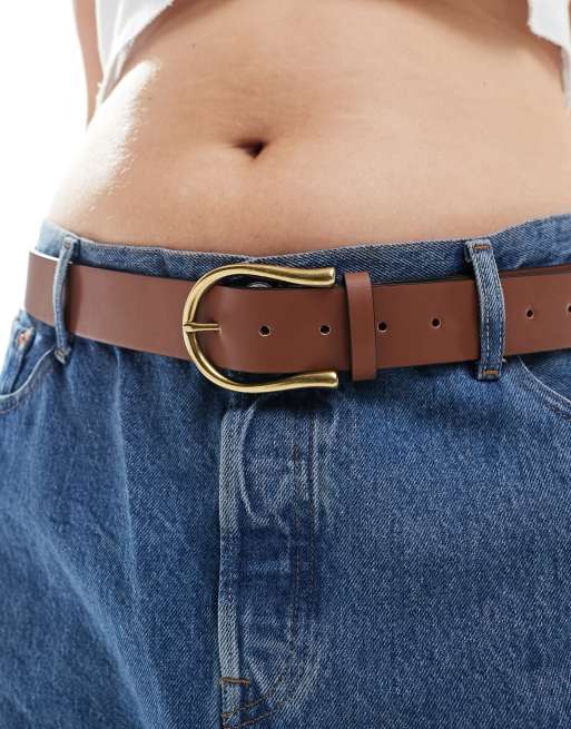 ASOS DESIGN Curve - Taille- en heupriem voor jeans met halvemaanvormige gesp in lichtbruin
