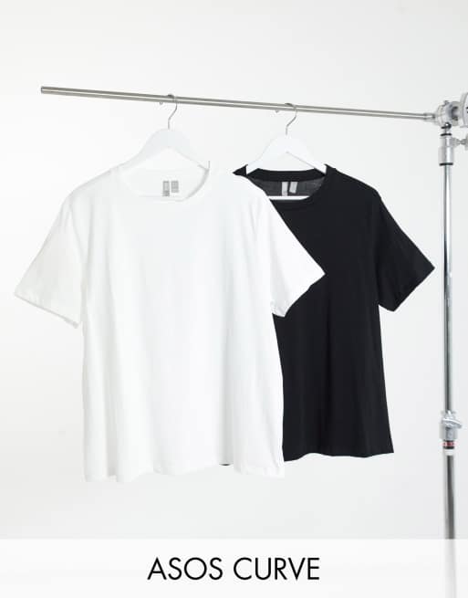 ASOS DESIGN Curve - Ultimate - Set van 2 T-shirts van katoen met ronde hals in zwart en wit, BESPAAR - MULTI