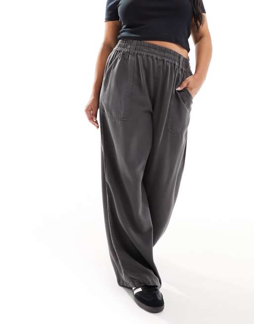 ASOS DESIGN Curve - Utility-broek met elastische taille in zwart met wassing
