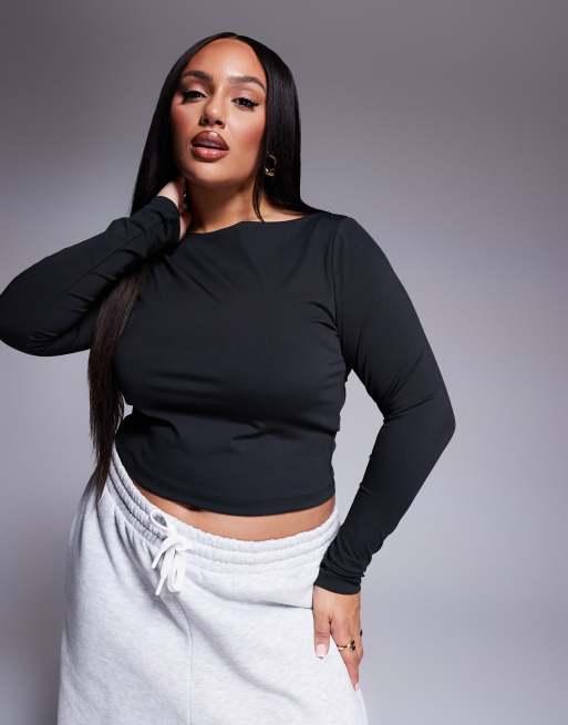 ASOS DESIGN Curve - Vormgevende top met lange mouwen en boothals in zwart