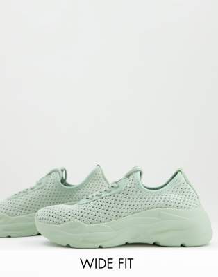 ASOS DESIGN - Brede pasvorm - Denmark - Gebreide sneakers met dikke zool en veters in mintgroen