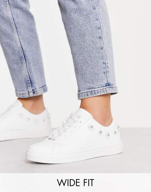 ASOS DESIGN - Dawn - Veterschoenen met rand van bloemetjes en brede pasvorm in wit