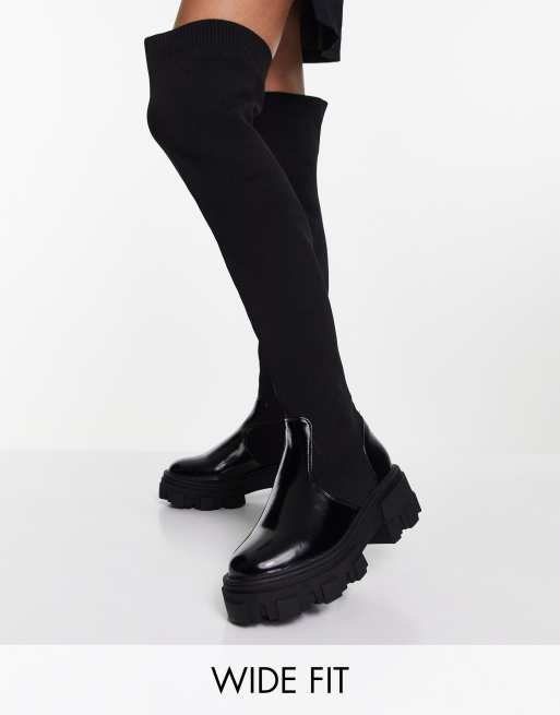 ASOS DESIGN - Kimmy - Over-de-knie-laarzen met brede pasvorm en dikke zool in zwart