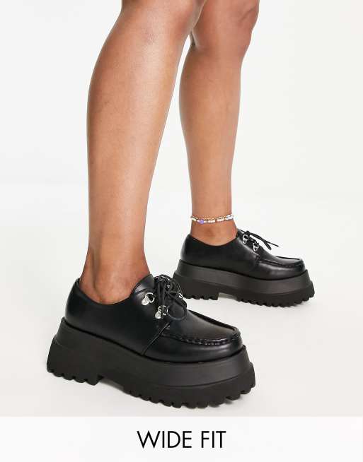 ASOS DESIGN - Memphis - Platte veterschoenen met dikke zool en brede pasvorm in zwart