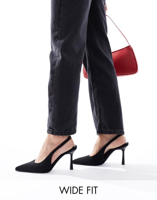 ASOS DESIGN - Salty - Slingback-schoenen met halfhoge stilettohak en brede pasvorm in zwart