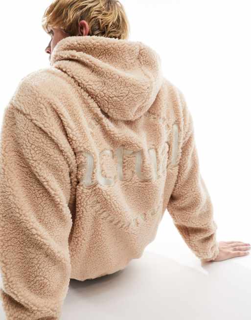 ASOS ACTUAL - Oversized hoodie met borduursel op de voor- en achterkant in beige borg
