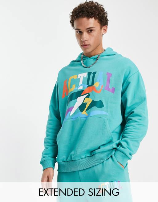 ASOS Actual - Oversized hoodie met veelkleurige grafische print in groenblauw, deel van co-ord set
