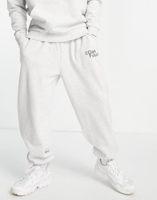 ASOS Dark Future - Co-ord set met joggingbroek met logoprint in gemêleerd wit