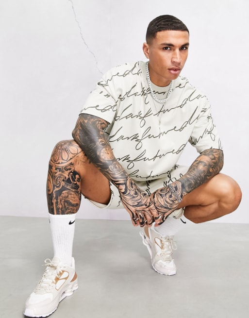 ASOS Dark Future - Combi-set bedekt met logoprint in naturel