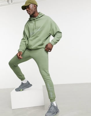 ASOS Dark Future - Combi-set met logo op de borst in olivine