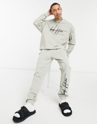 ASOS - Dark Future - Oversized combi-set met tekstlogo in ijsgrijs