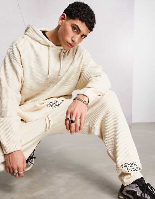 ASOS Dark Future - Oversized hoodie van stof met wafelstructuur en geborduurd logo in neutraal, deel van co-ord set